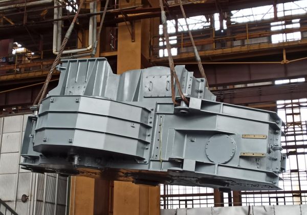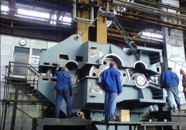 Oprava velkorozměrové převodovky pro pohon kolesa velkorypadla. Bylo opraveno těleso, vyměněna ložiska a některé ozubené díly byly vyrobeny nové.