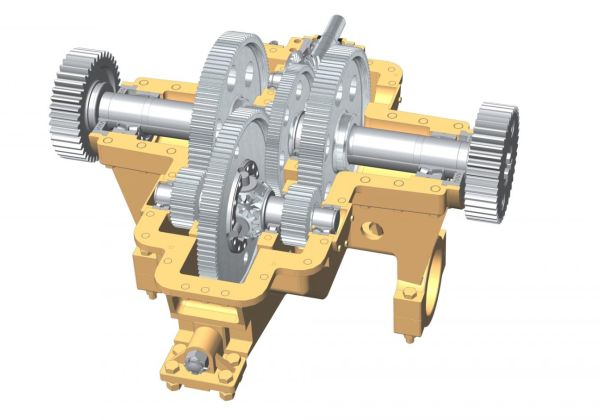Čtyřstupňová kuželočelní převodovka s jedním vstupem a dvěma výstupy. Před poslední stupeň je umístěn kuželový diferenciál umožňující otáčení výstupních hřídelí rozdílnými rychlostmi.