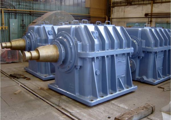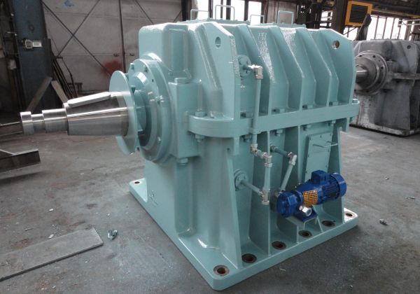 Jednostupňová čelní převodovka sloužící zároveň jako ložiskové těleso pro uložení hřídele ventilátorového mlýnu v uhelné elektrárně.